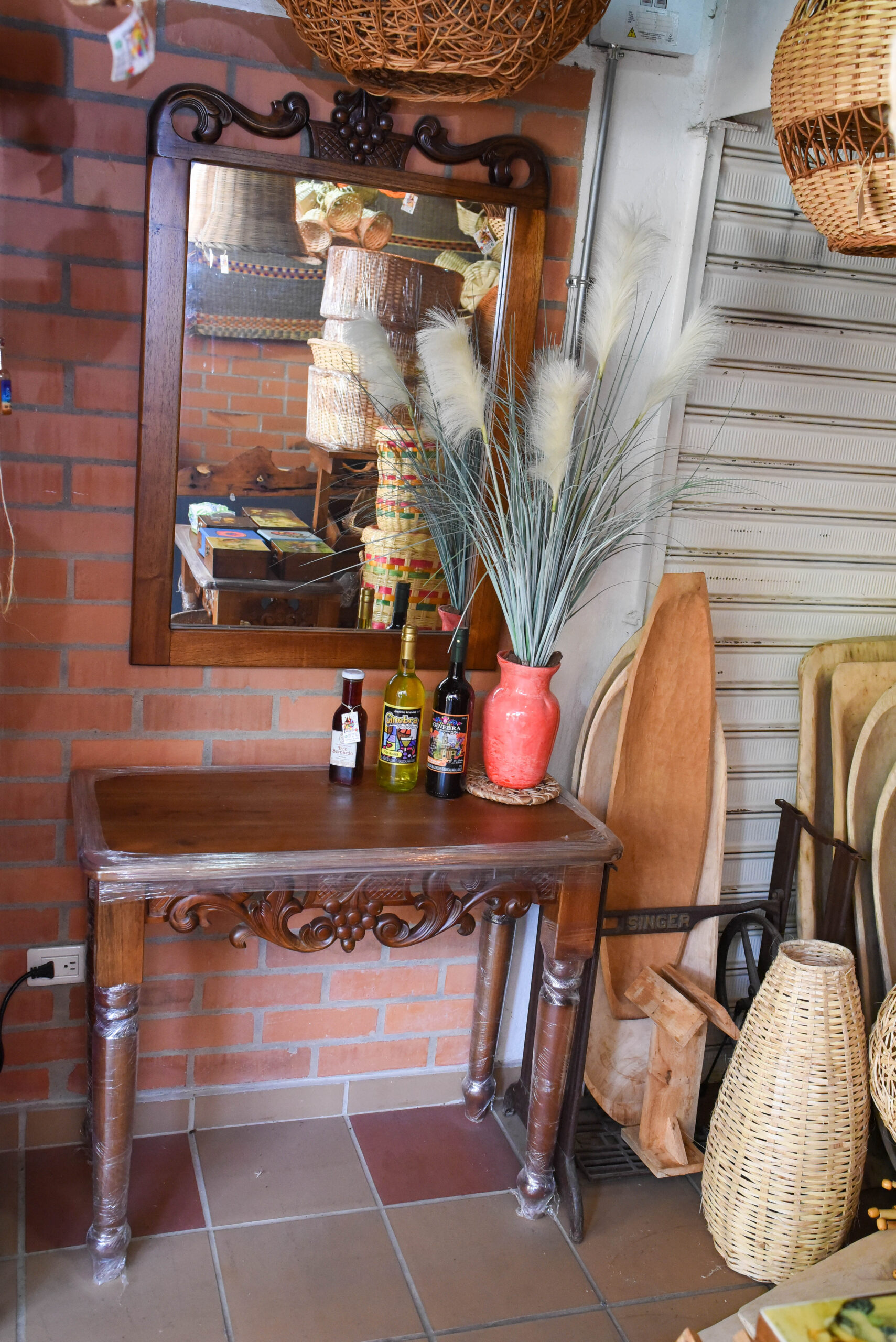 >Bolsos en suncho y cortinas en bambu